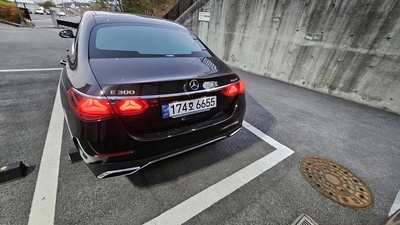 이번에 나온 매물은 2024년식 벤츠 E클래스 E300 4MATIC AMG 라인으로, 신차 가격이 9,515만원에 달하는 고급 트림이다. 검정색 외관과 오토 기어를 갖췄으며, 가솔린 모델로 연비는 11.6km/L (3등급)이다.
