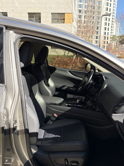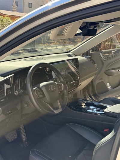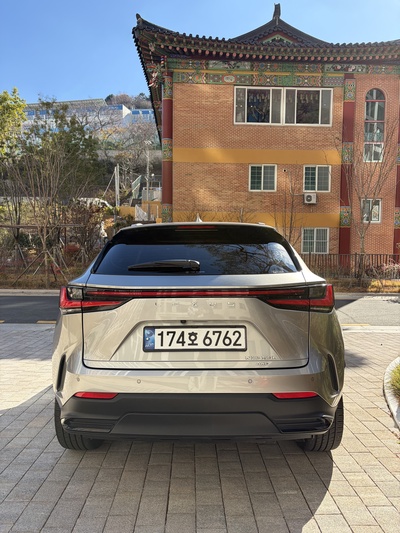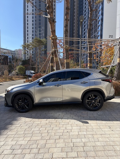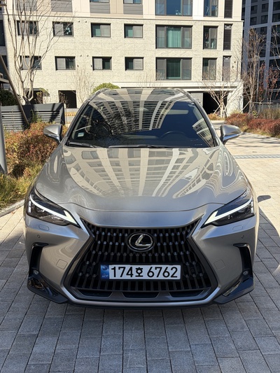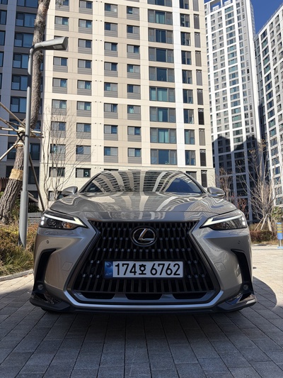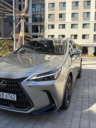 차량은 렉서스 NX(2세대) 350h 프리미엄 트림으로, 가솔린과 전기를 사용하는 하이브리드 모델이다. CVT 기어를 장착했으며, 회색 외관에 연비는 14km/L (2등급)를 자랑한다. 신차 가격은 6,740만원이다.