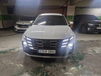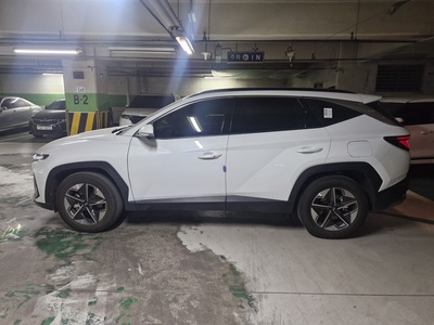 이번에 공개된 차량은 현대자동차의 '더 뉴 투싼 하이브리드 1.6 터보 하이브리드 2WD 프리미엄' 트림으로, 2025년식 최신 모델이다. 깔끔한 흰색 외장 컬러에 가솔린+전기 하이브리드 엔진을 장착하여 16.2km/L의 뛰어난 연비(1등급)를 자랑한다. 신차가격은 3,577만원 상당이다.