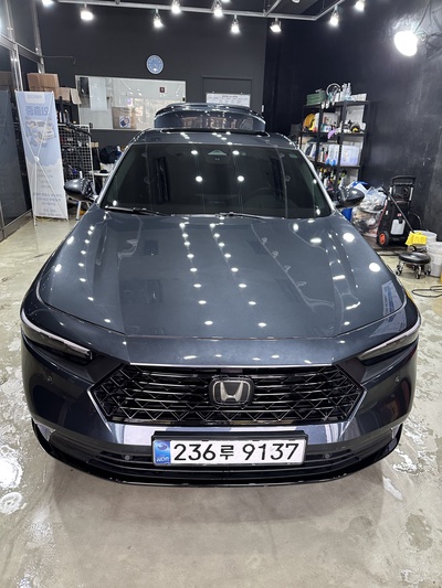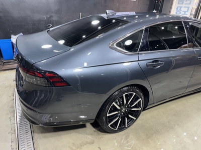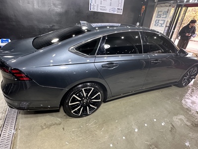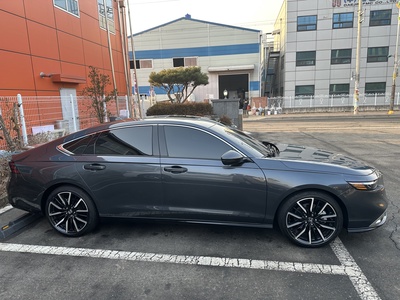 해당 차량은 2024년식 혼다 어코드(11세대) 2.0 Hybrid 투어링 트림으로, 고급스러운 회색 외장 색상을 자랑한다. 가솔린과 전기를 함께 사용하는 고효율 하이브리드 모델로, 16.7km/L의 뛰어난 복합 연비를 기록하며 1등급 효율을 인증받았다. 신차 가격 5,340만원에 달하는 이 차량은 첨단 CVT 변속기와 함께 부드럽고 정숙한 주행감을 선사한다. 특히, 하이브리드 배터리에는 10년 또는 무제한 주행거리 보증이 적용되어 장기적인 안심을 더한다.